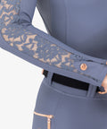 The breathable lace panels across the arms and chest aren't just a beautiful & chic look, they actively ventilate heat and moisture to keep you cool & dry while competing.