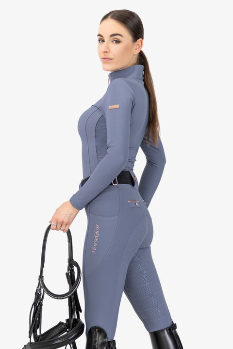 Kylie – Maillot d'équitation cristaux manches longues | smokey grey rose gold